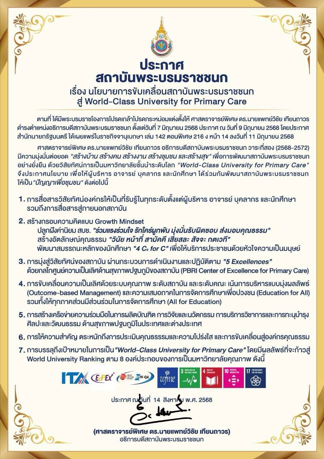 งานวิจัย นวัตกรรม บริการวิชาการและบริการสุขภาพ